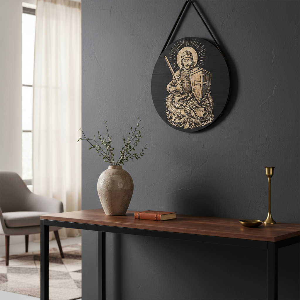 Placas Decorativas Redondas e Quadros em Madeira, no estilo Xilogravura, com temas Religiosos, Florais, Animais, Frases e Salmos